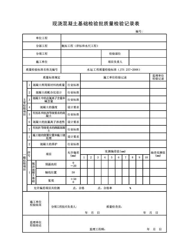 表格名称:现浇混凝土基础检验批质量检验记录表