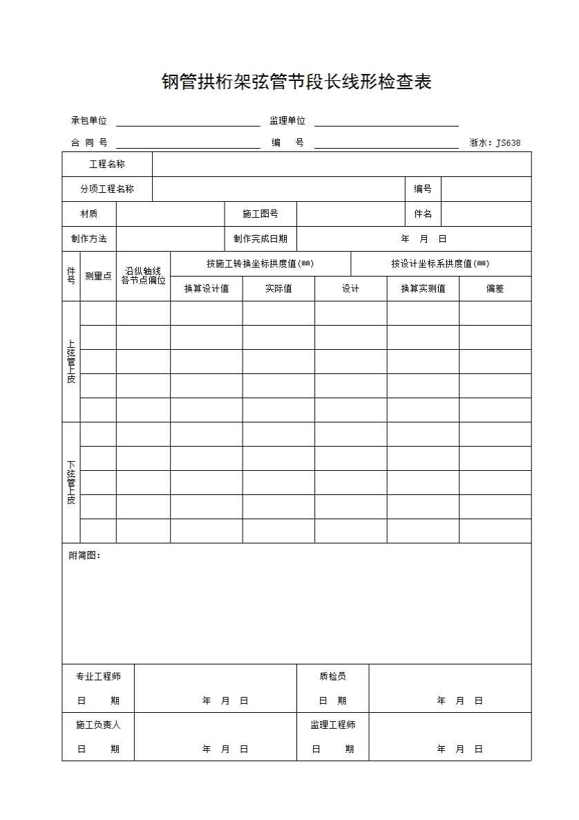 表格名称:038 钢管拱桁架弦管节段长线形检查表