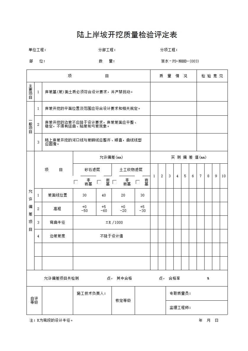 表格名称:003 陆上岸坡开挖质量检验评定表