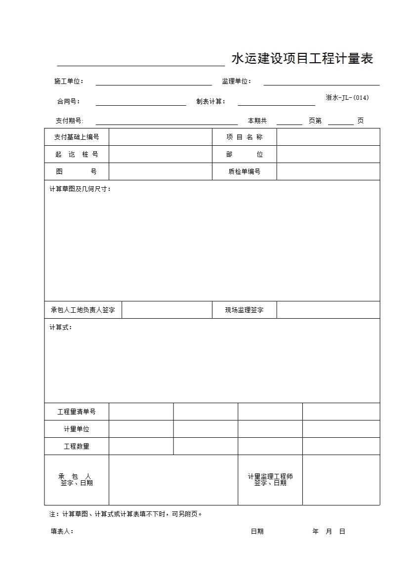 表格名称:014 水运建设项目工程计量表