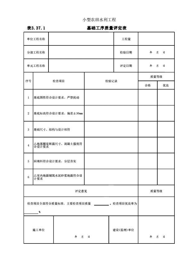表格名称:表3.37.1 基础工序质量评定表