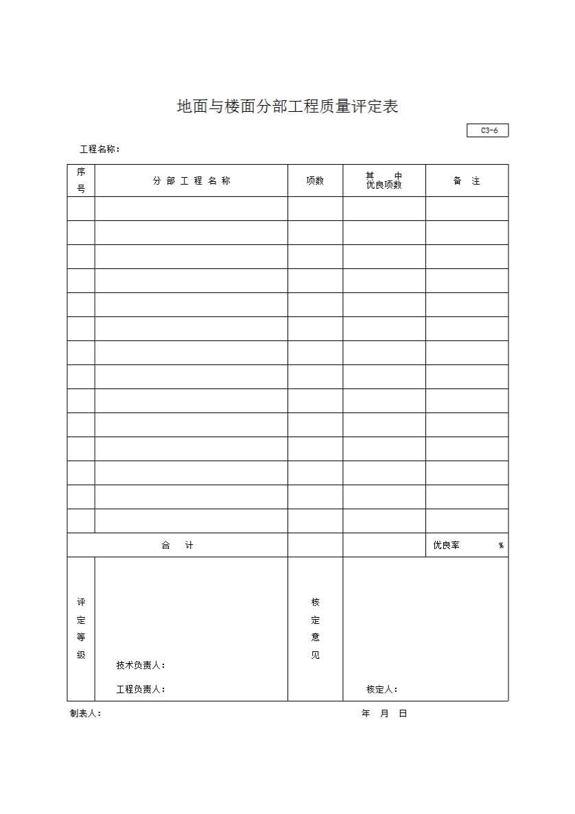 表格名称:C3-6 地面与楼面分部工程质量评定表