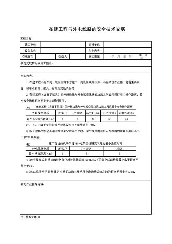 表格名称:在建工程与外电线路的安全技术交底