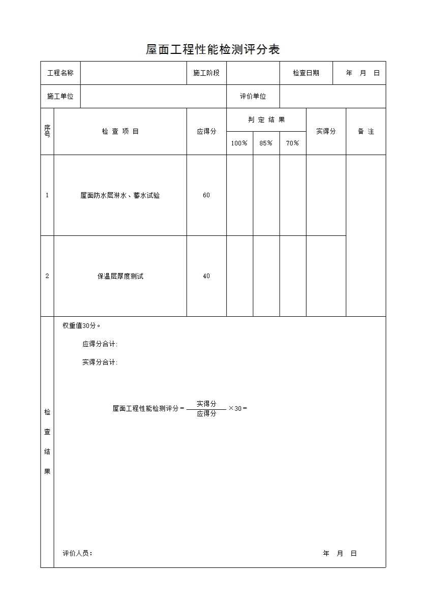 屋面工程性能检测评分表