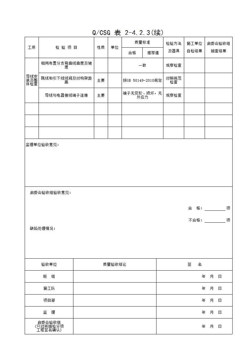 QCSG 表 2-4.2.3 引下线及设备连线安装 分项工程质量验收记录表