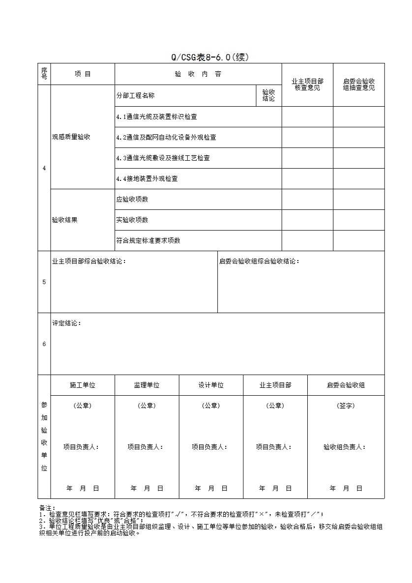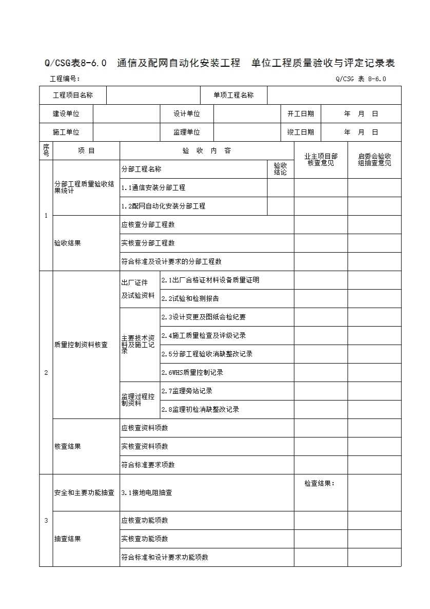 QCSG表8-6.0 通信及配网自动化安装工程 单位工程质量验收与评定记录表