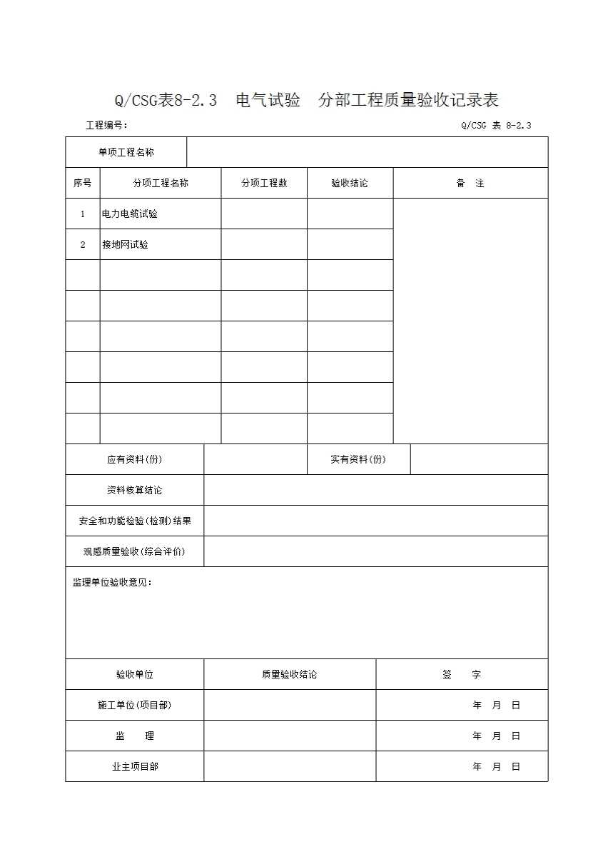 QCSG表8-2.3 电气试验 分部工程质量验收记录表