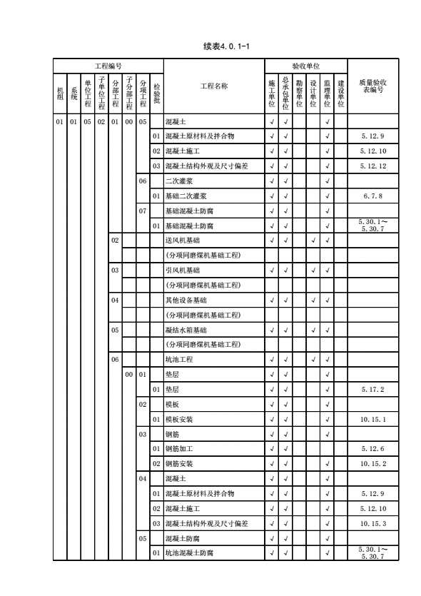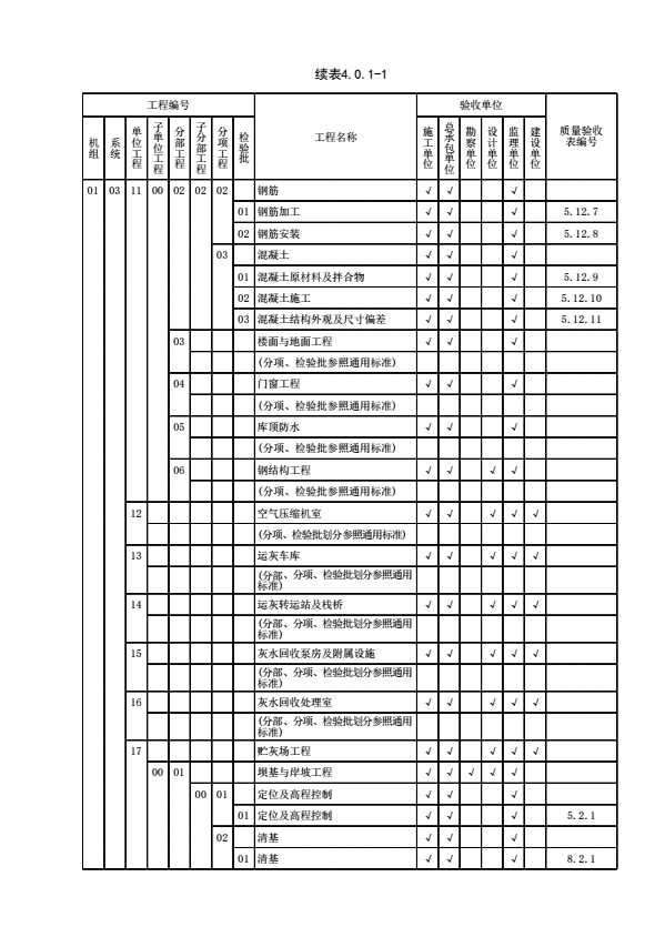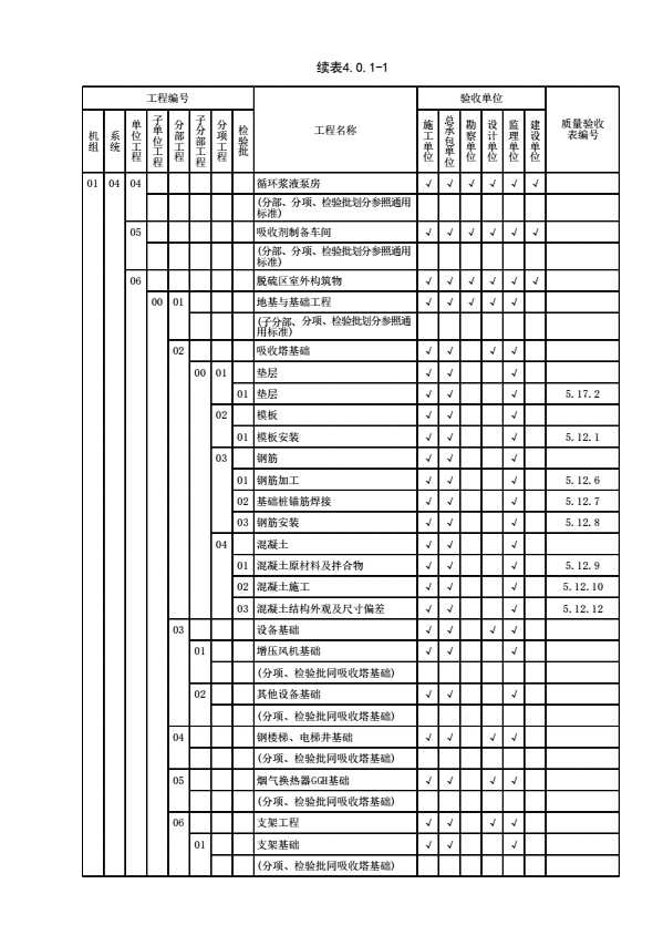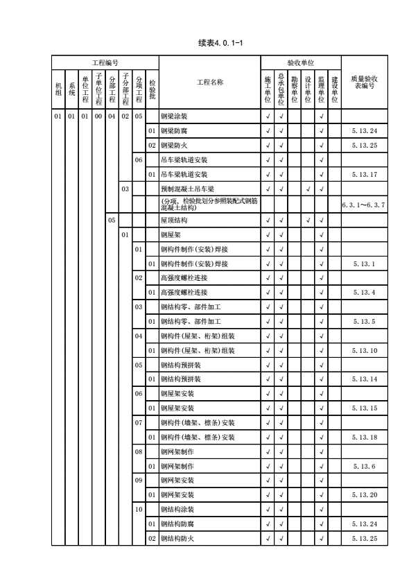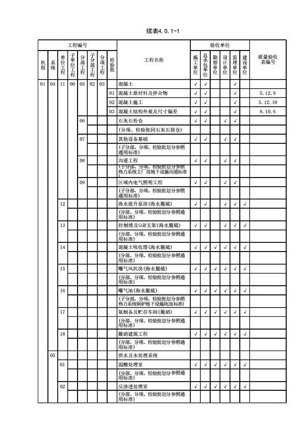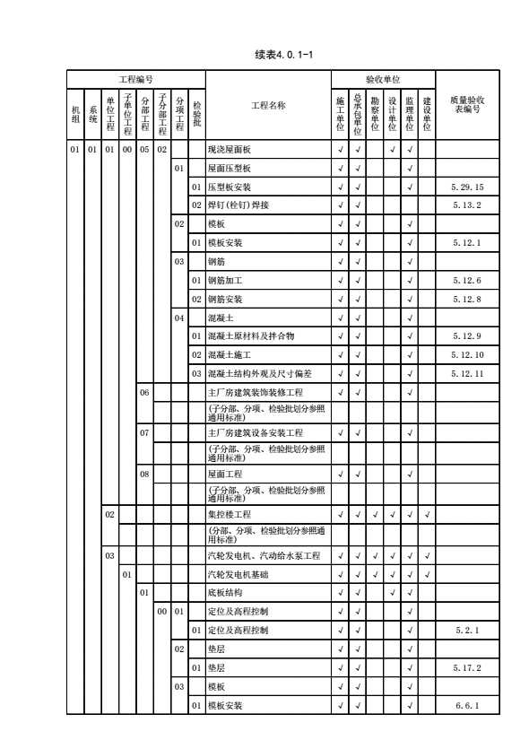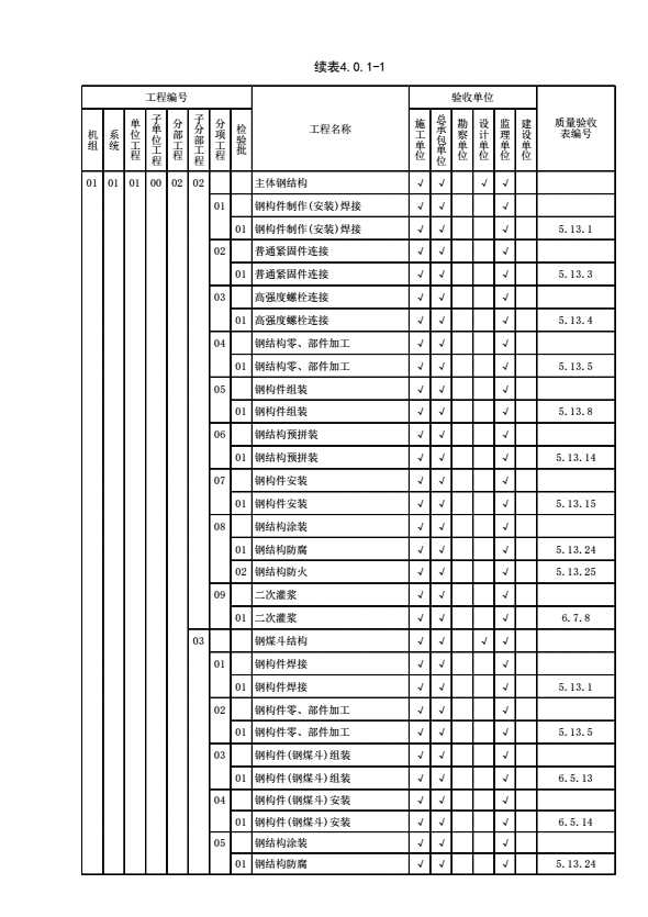 表格名称:表4.0.1-1 火电系统工程质量验收范围划分表