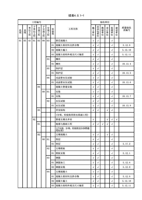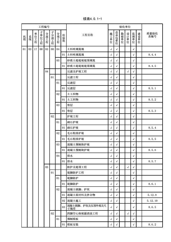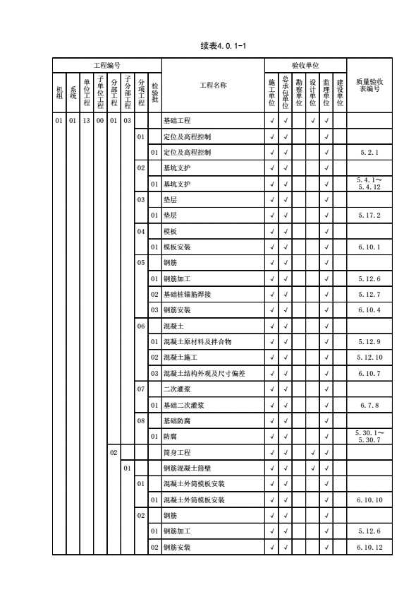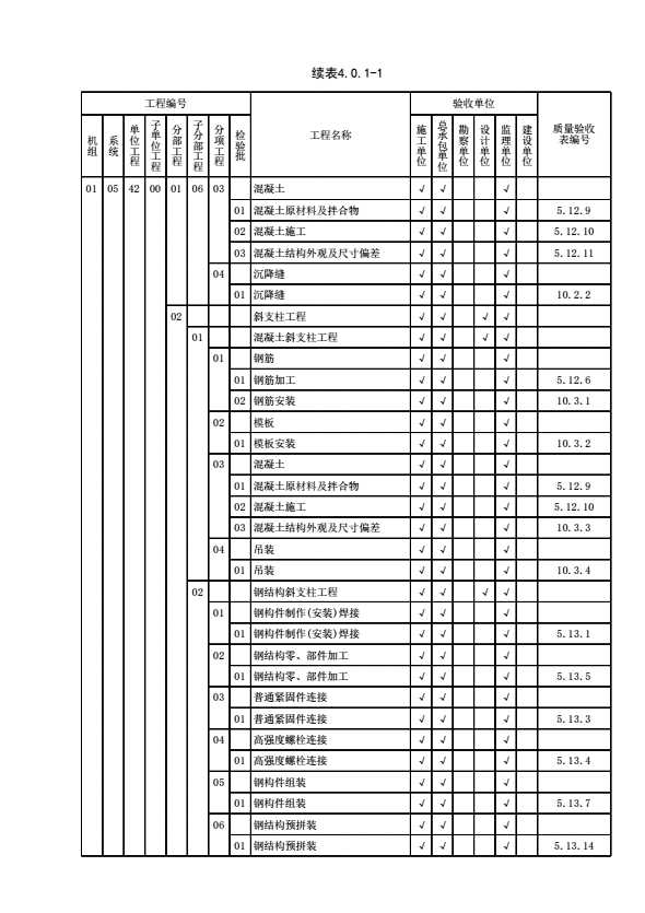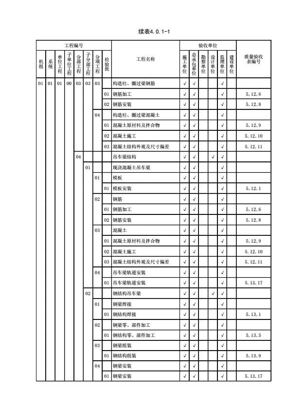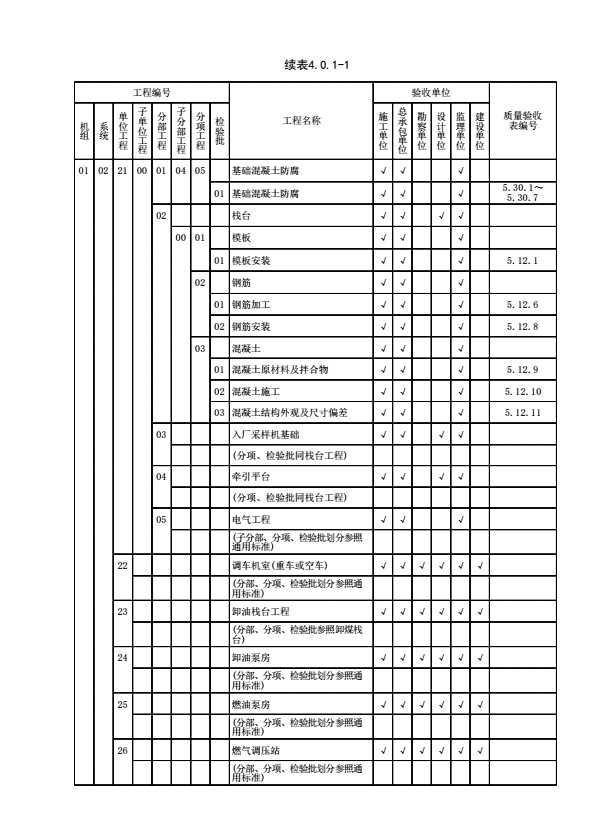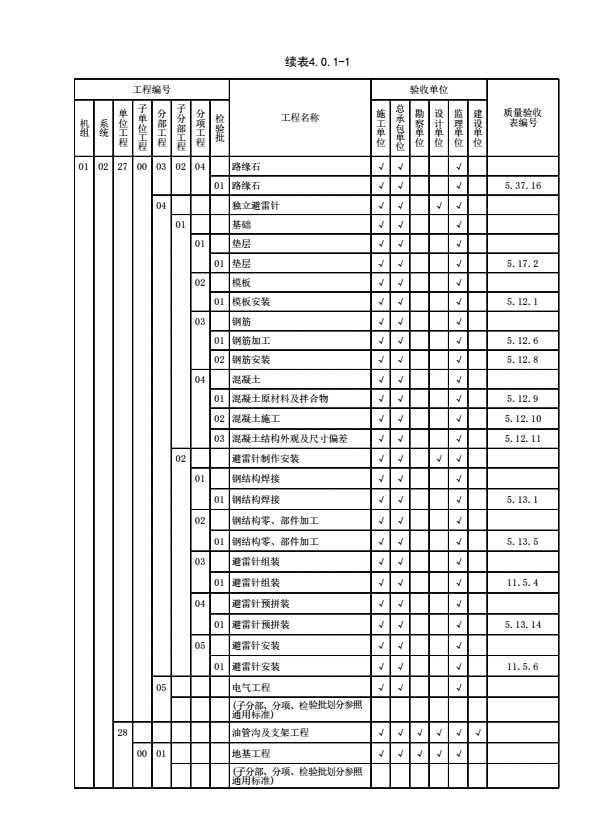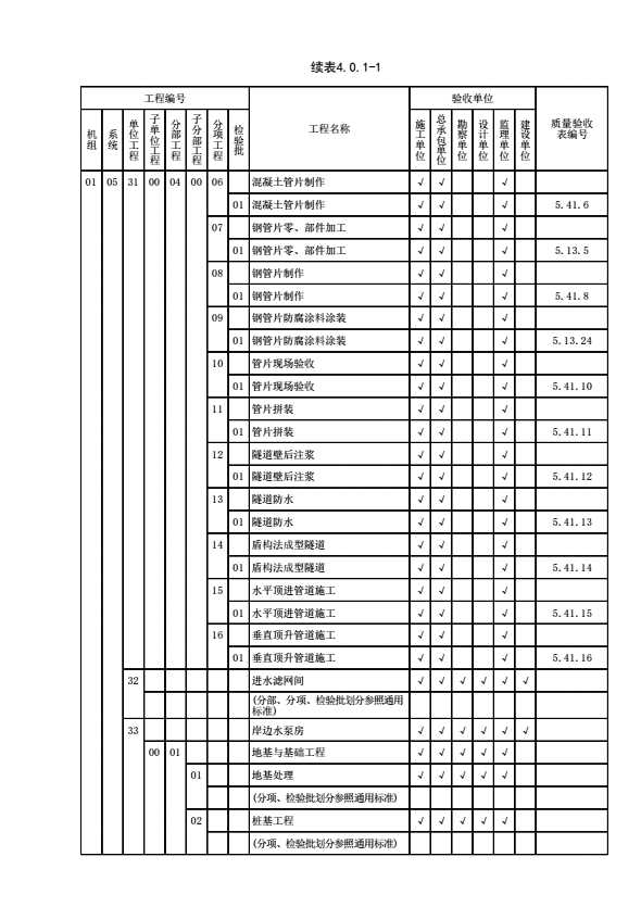 表格名称:表4.0.1-1 火电系统工程质量验收范围划分表