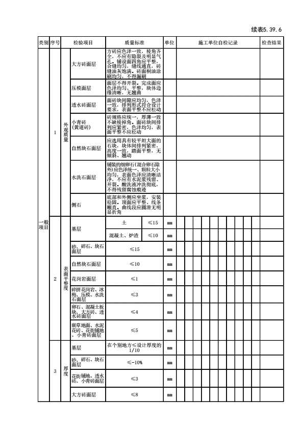表格名称:表5.39.6 园路与铺装场地工程检验批质量验收记录