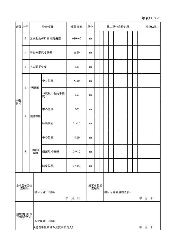 表格名称:表11.3.6设备基础混凝土工程检验批质量验收记录