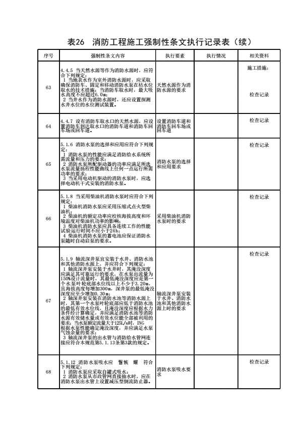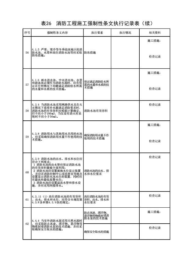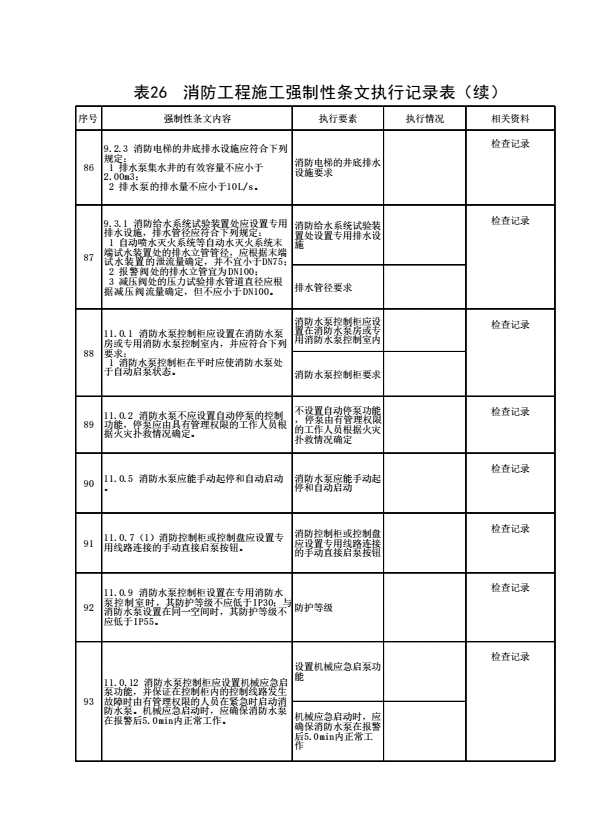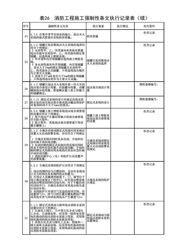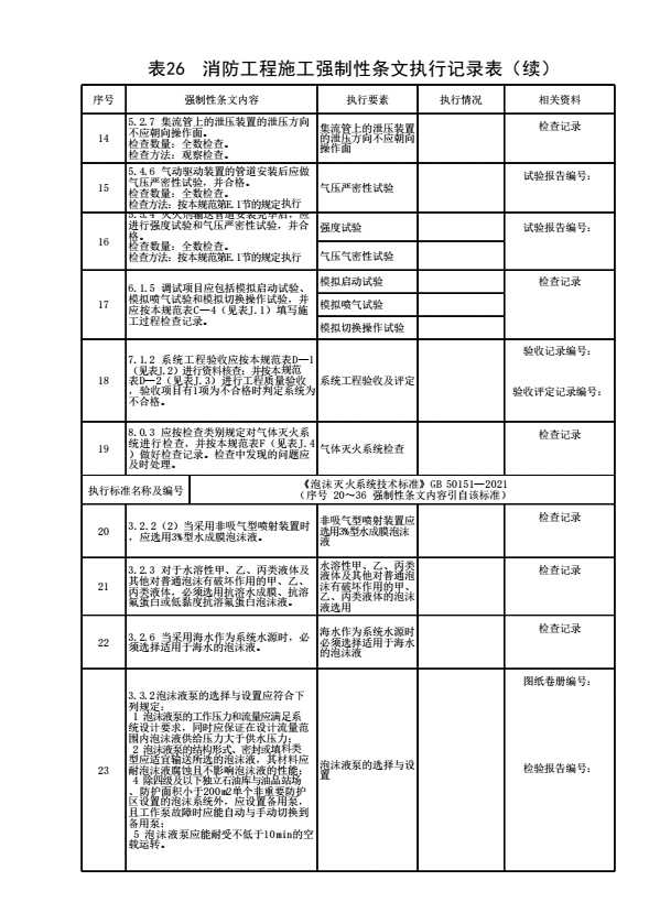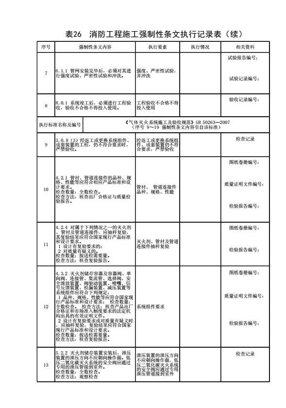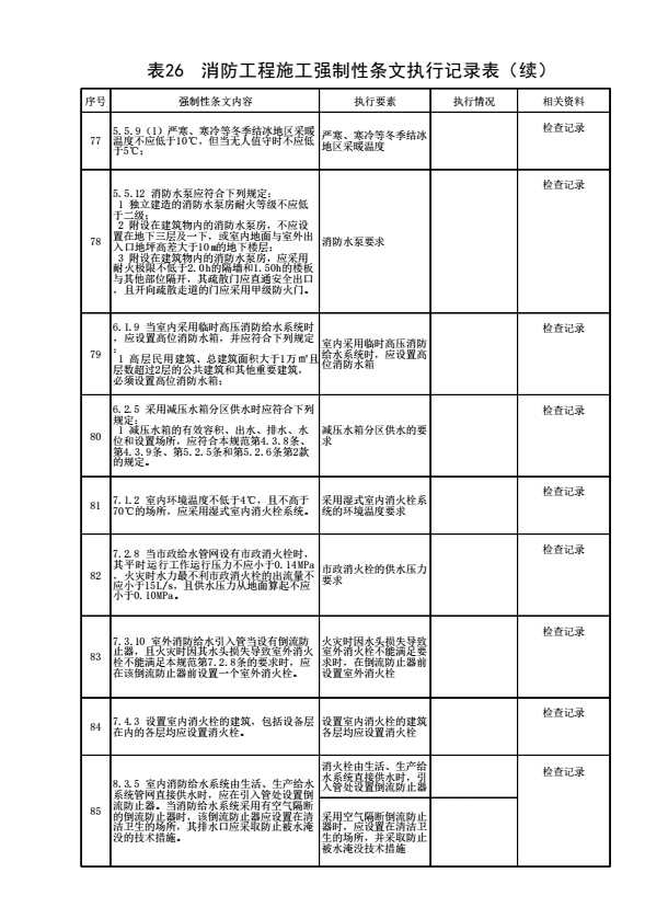 表格名称:表26 消防工程施工强制性条文执行记录表