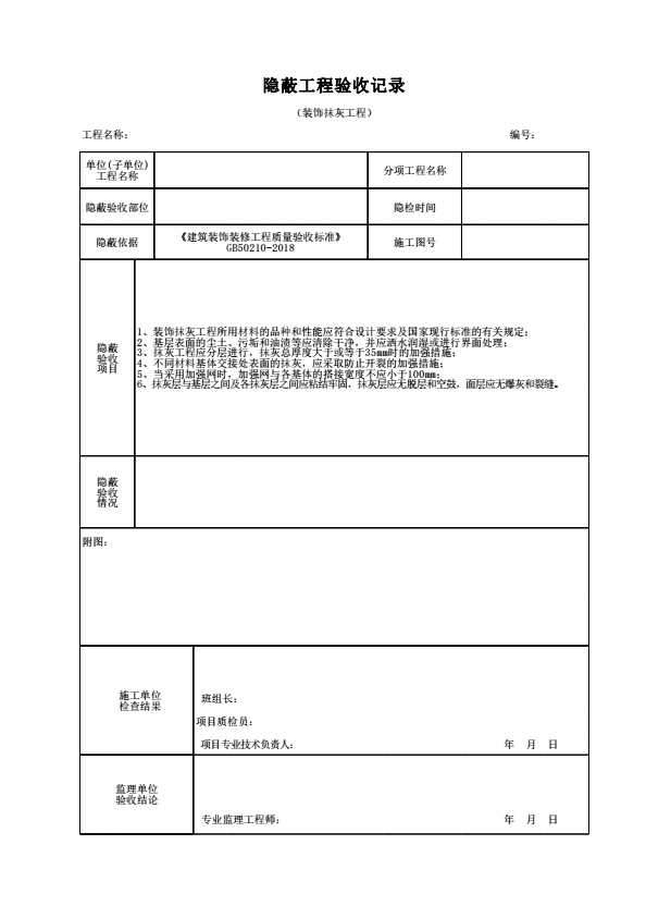 表格名称:隐蔽工程验收记录(装饰抹灰工程)
