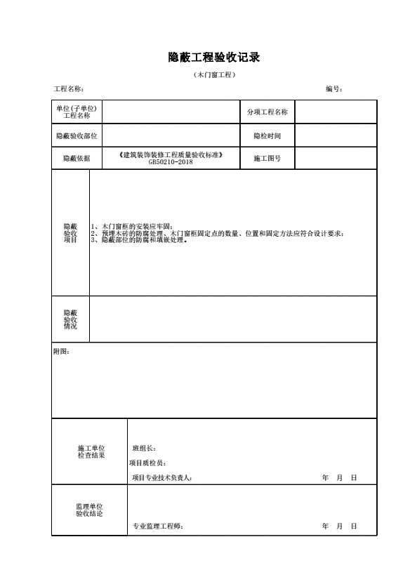 表格名称:隐蔽工程验收记录(木门窗工程)
