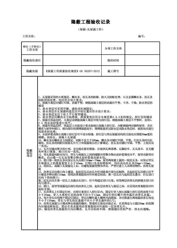 表格名称:隐蔽工程验收记录(屋面-瓦屋面工程)