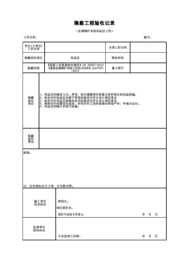 表格名称:隐蔽工程验收记录(金属围护系统保温层工程)