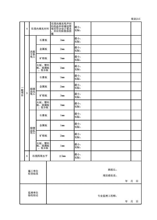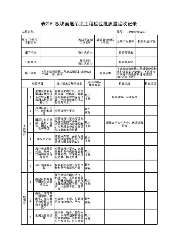 表格名称:140103060201 板块面层吊顶工程检验批质量验收记录