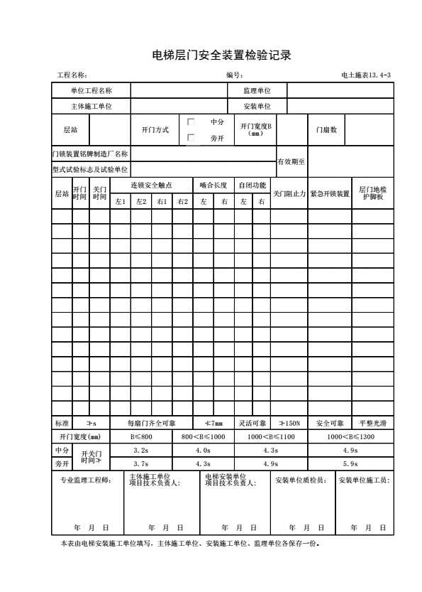 表格名称:电土施表13.4-3 电梯层门安全装置检验记录