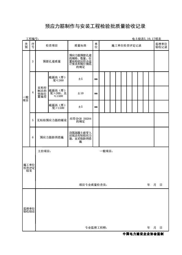 表格名称:电土验表5.10.17 预应力筋制作与安装工程检验批质量验收记录