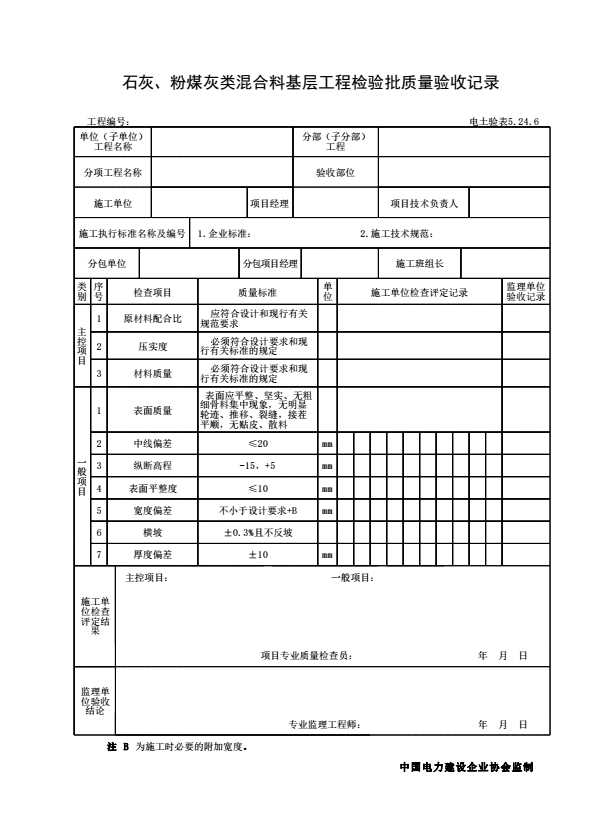 表格名称:电土验表5.24.6 石灰、粉煤灰类混合料基层工程检验批质量验收记录