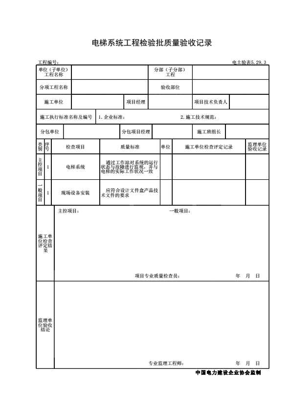 表格名称:电土验表5.29.3 电梯系统工程检验批质量验收记录