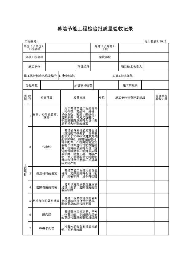 表格名称:电土验表5.30.2 幕墙节能工程检验批质量验收记录