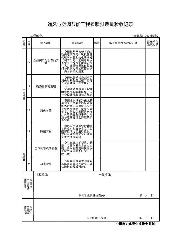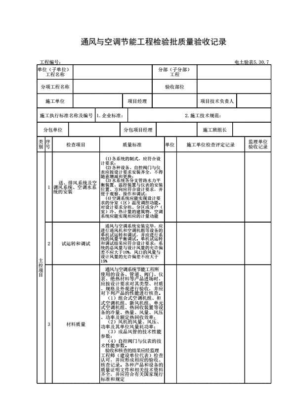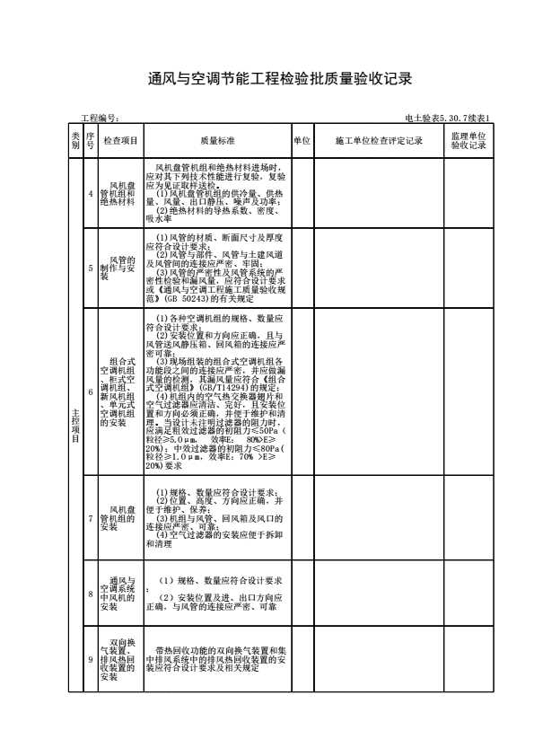 表格名称:电土验表5.30.7 通风与空调节能工程检验批质量验收记录