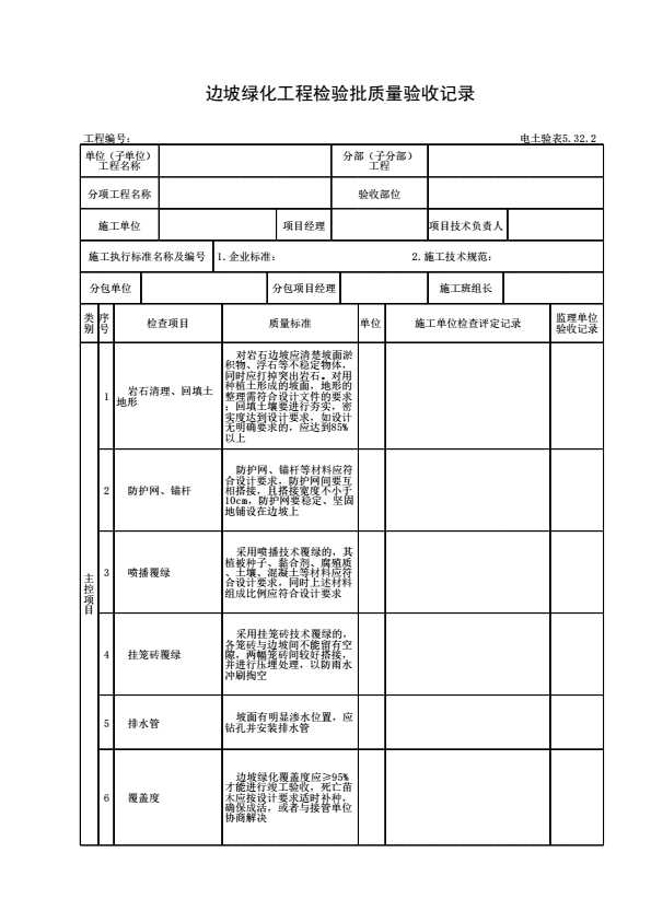 表格名称:电土验表5.32.2 边坡绿化工程检验批质量验收记录