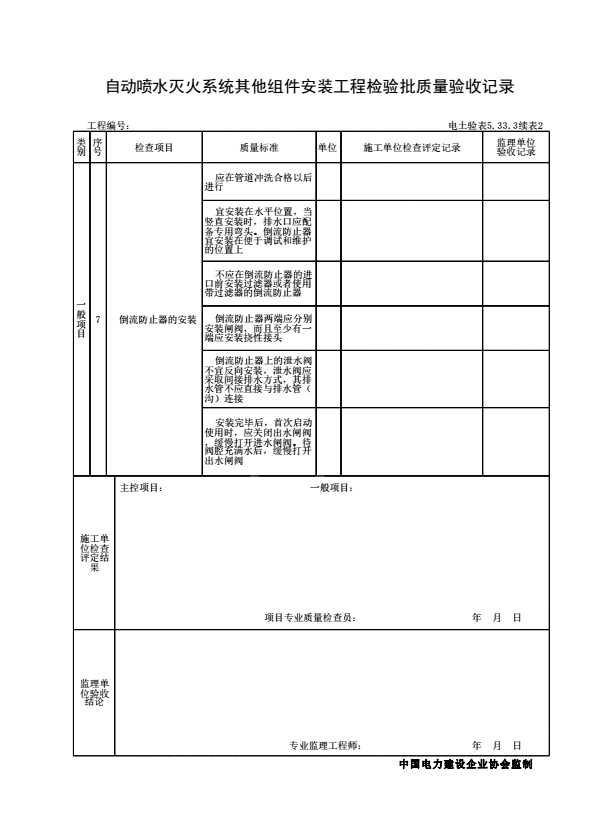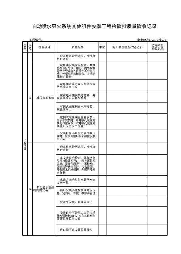 表格名称:电土验表5.33.3 自动喷水灭火系统其他组件安装工程检验批质量验收记录