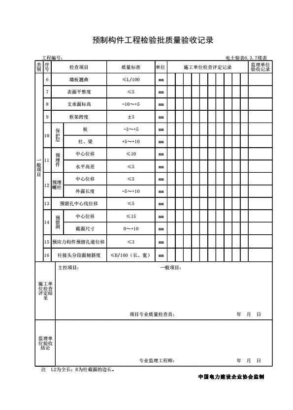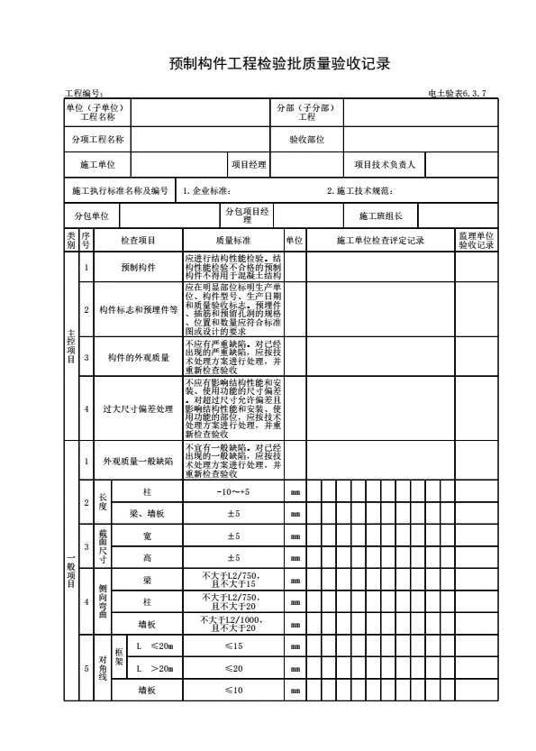 表格名称:电土验表6.3.7 预制构件工程检验批质量验收记录