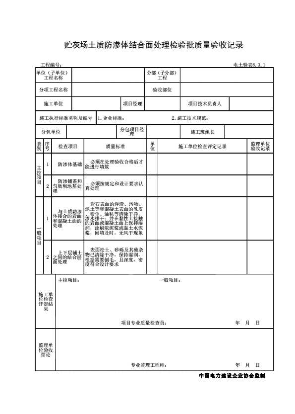 表格名称:电土验表8.3.1 贮灰场土质防渗体结合面处理检验批质量验收记录
