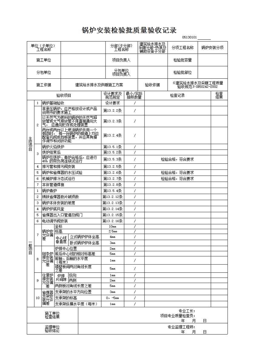 13.2.12铸铁省煤器支承架安装的允许偏差和检验方法