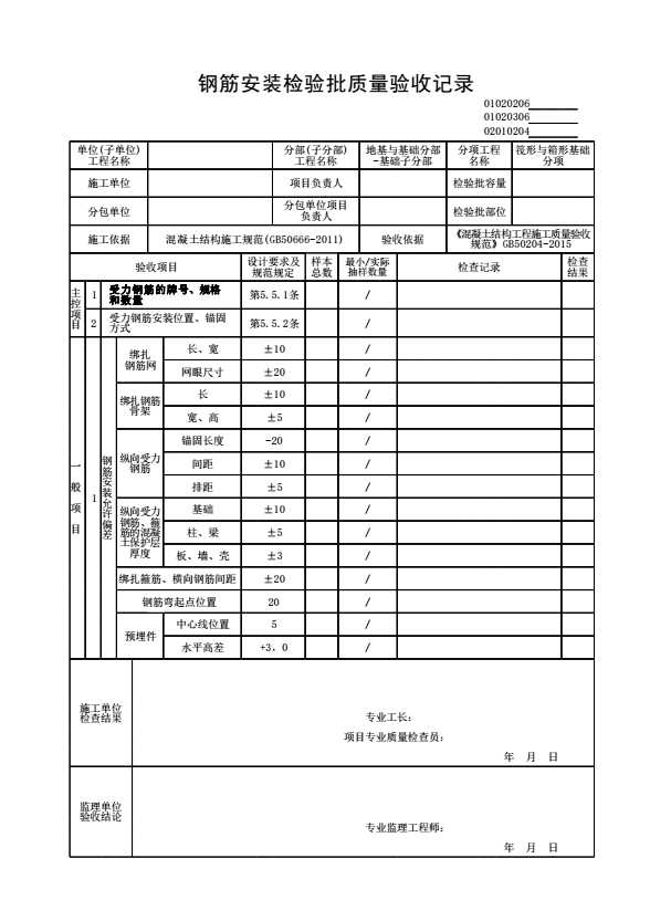5.5.1 钢筋安装时,受力钢筋的品种、级别、规格和数量必须符合设计要求。