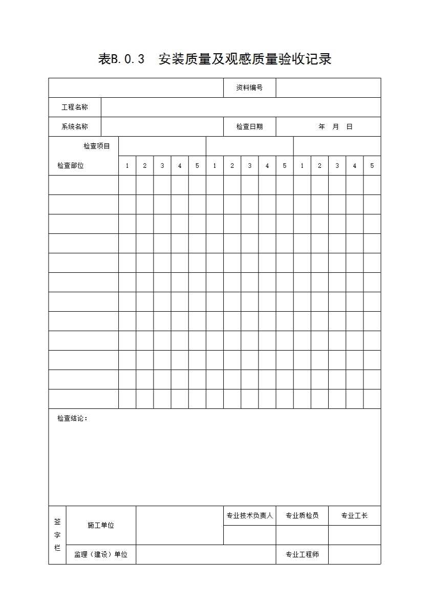 表格名称:表B.0.3 安装质量及观感质量验收记录