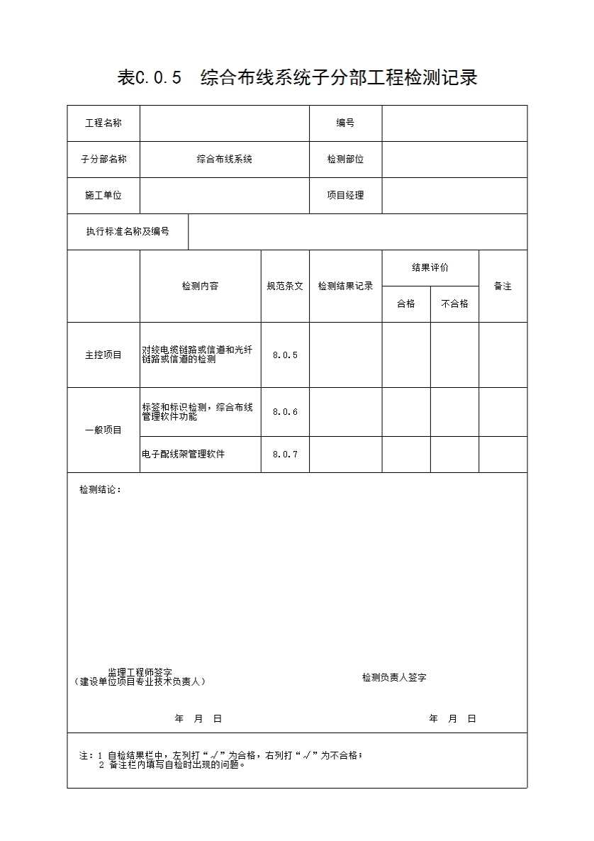 表格名称:表C.0.5 综合布线系统子分部工程检测记录