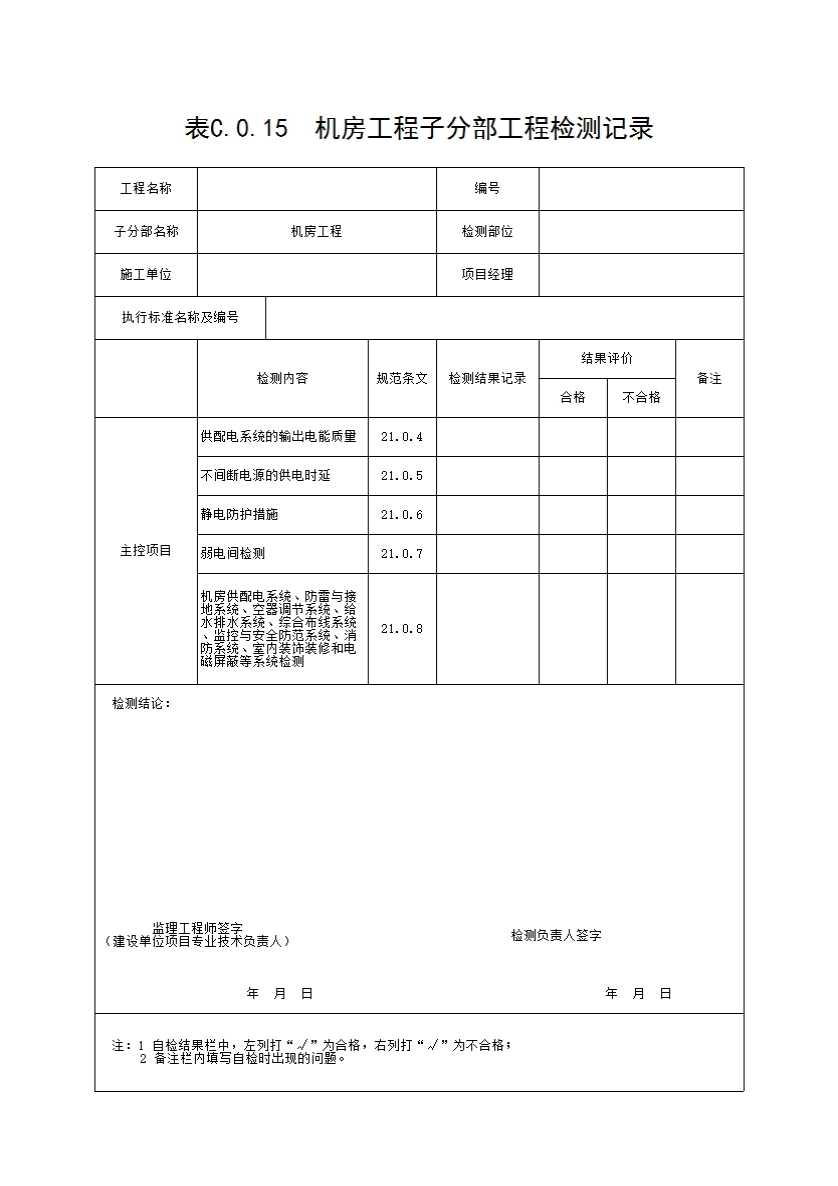 表格名称:表C.0.15 机房工程子分部工程检测记录
