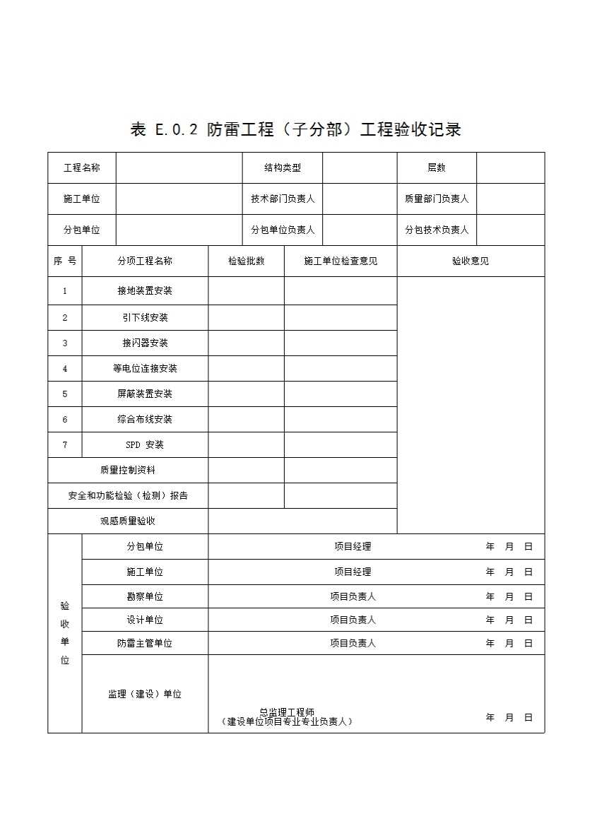 表格名称:表E.0.2 防雷工程(子分部)工程验收记录