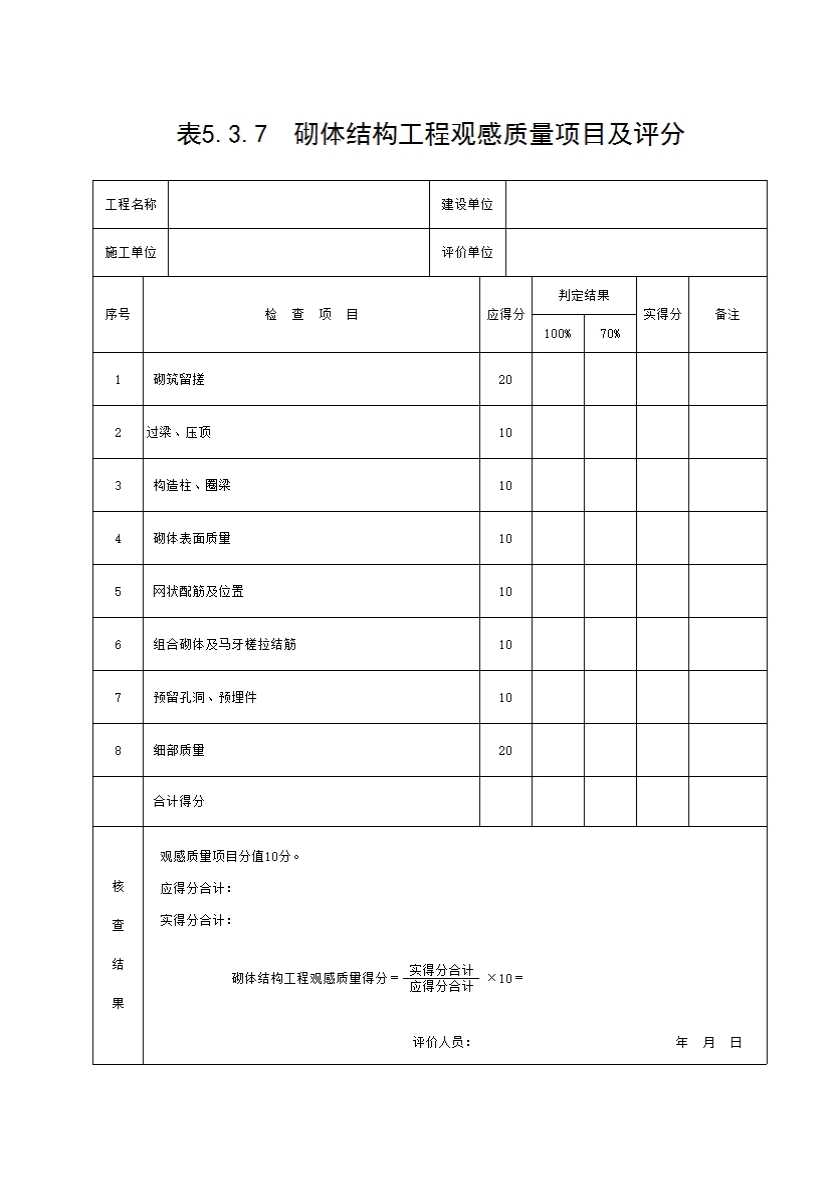 建筑工程施工质量评价表(GB/T 50375-2016)