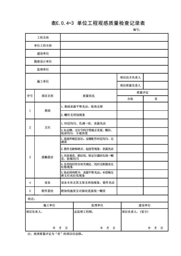 表格名称:2【接触网】单位工程观感质量检查记录表