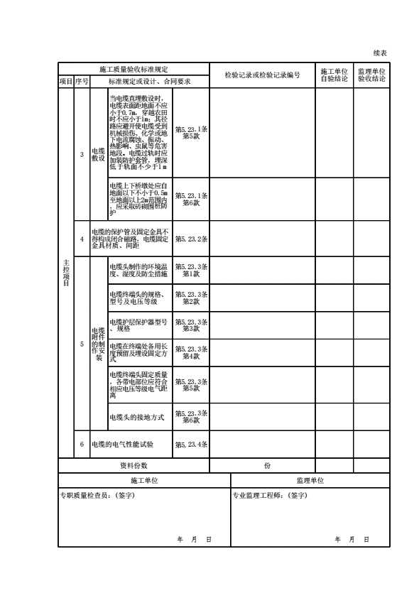 表格名称:G10020503 27.5kV电缆检验批质量验收记录表