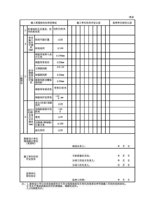 表格名称:G02013002 挡土墙基础检验批质量验收记录