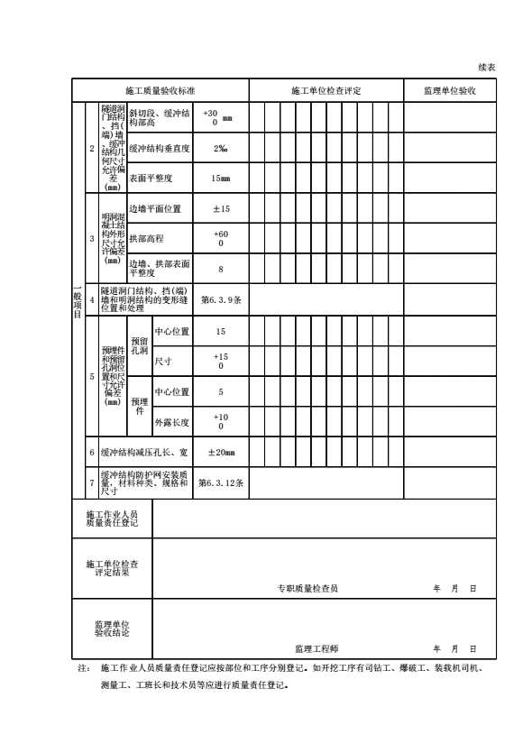 表格名称:G04030102 洞门结构检验批质量验收记录