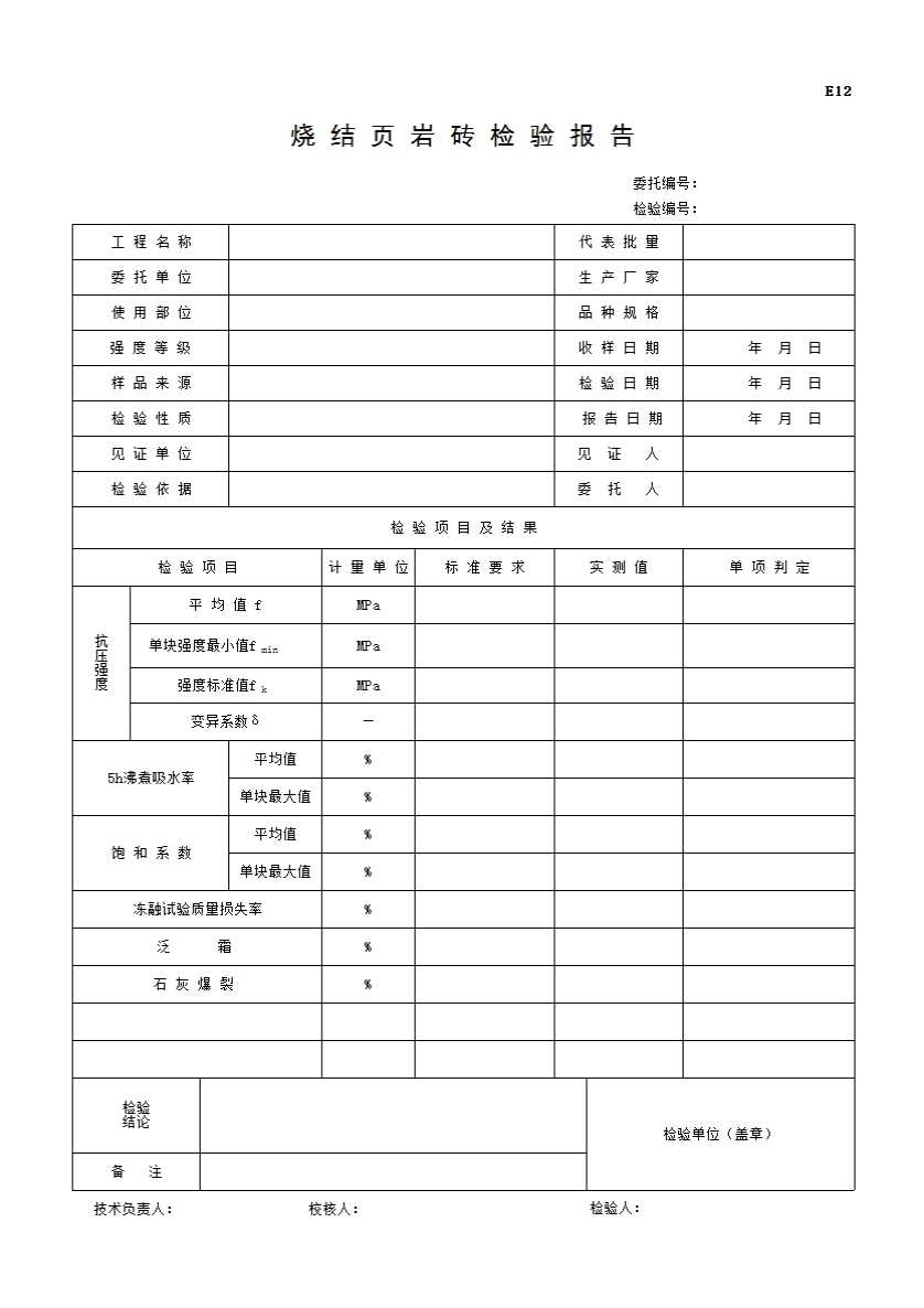 表格名称:烧结页岩砖检验报告