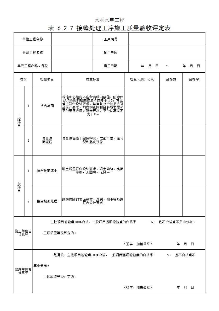 表 6.2.7 接缝处理工序施工质量验收评定表
