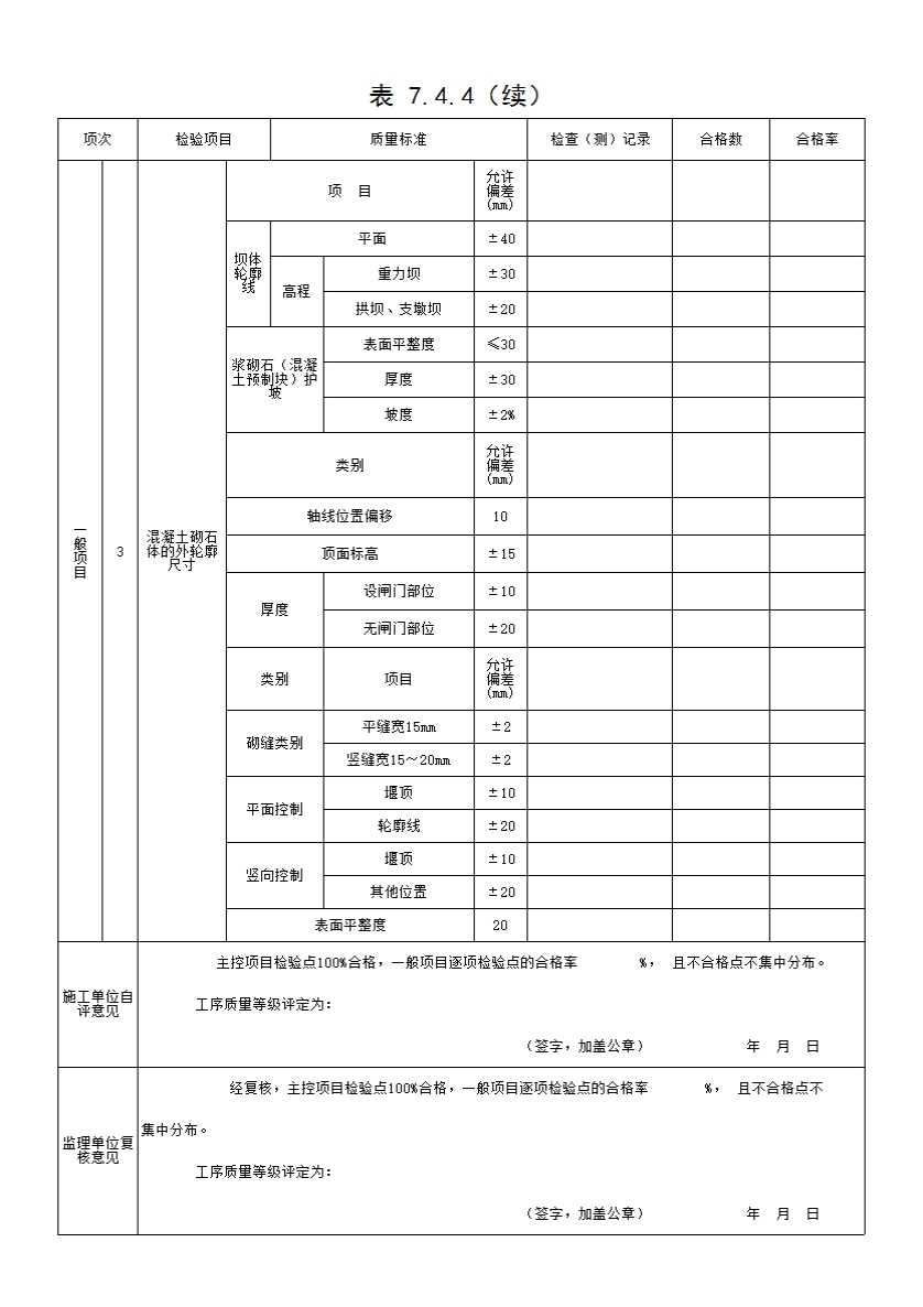 表 7.4.4 混凝土砌石体砌筑工序施工质量验收评定表