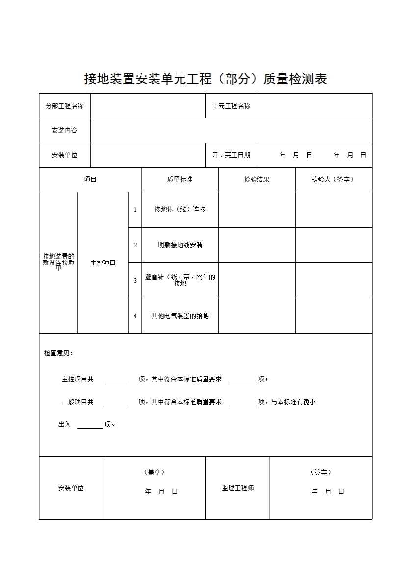 表格名称:接地装置安装单元工程(部分)质量检测表2