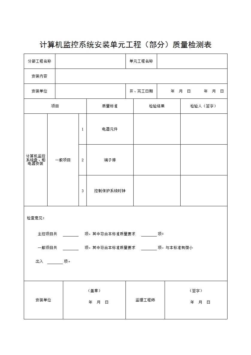 表格名称:计算机监控系统安装单元工程(部分)质量检测表2
