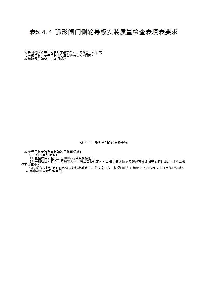 表5.4.4 弧形闸门侧轮导板安装质量检查表填表要求