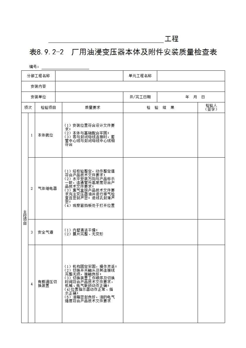 表8.9.2-2 厂用油浸变压器本体及附件安装质量检查表