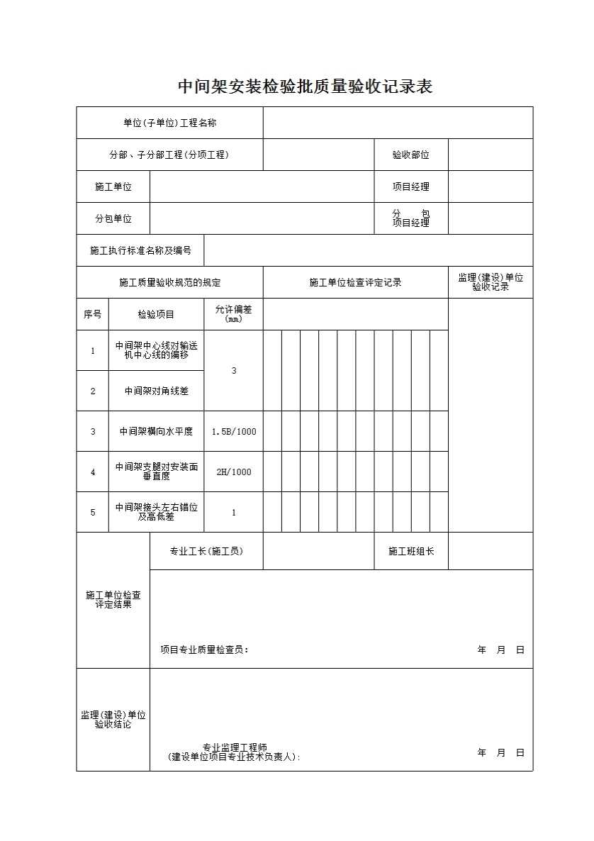 6.2.1.1 中间架安装的检验项目、 要求和方法应符合表6.2.1-1 的规定。